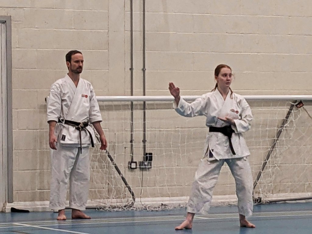 We were delighted to hold a training & grading on 29 January 2023 with a guest examiner, Sensei Valerie Dale. At 6th Dan, Sensei Val is currently the highest-ranked female karateka at, and Vice Chair of, our association body Shotokan Connect. It’s also the first time we’ve had a woman run our gradings and we were honoured to host her!